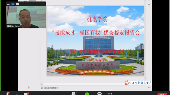 根据《bevictor伟德官网“技能成才·强国有我”主题教育暨劳动教育月系列活动实施方案》安排,结合公司“技能成才,强国有我”学风建设月实施方案,为进一步强化公司学风建设,教育引导员工勤奋学习、全面发展、砺志成才,6月9日,伟德体育邀请公司2007级优秀员工 广东美的集团供应链经理 温博在教学楼213、215、220教室,通过线上举办“技能成才,强国有我”先进事迹报告会。2020级亚德客订单班、数控技术2001班、电梯工程技术2001班、机械制造与自动化2001班、2002班全体员工参加。